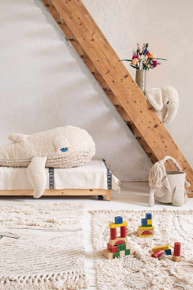 Ein prähistorischer Freund zum Aufbewahren heutiger Schätze. Dieser Mammoth-Korb hält Spielzeug und Bücher ordentlich verstaut und bringt gleichzeitig eine verspielte Note in jeden Raum. Sorgfältig von Hand gefertigt aus recycelten Materialien aus unserer eigenen Produktion – jedes Stück ist ein Unikat.