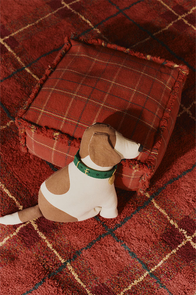 Handgewebt auf traditionellen Webstühlen zeigt dieser Pouf ein klassisches tartan-Muster in warmem Mapple Red. Die weichen Fransen verleihen ihm eine verspielte Note und zusätzliche Textur. Der perfekte Platz zum Sitzen, Spielen und Verschönern des Kinderzimmers. Der Pouf ist abnehmbar und waschbar.