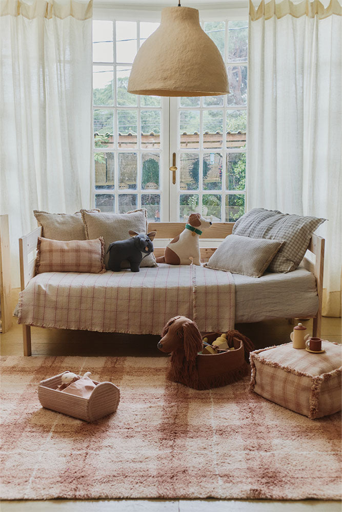 Alle textilen Dekorationsstücke von Lorena Canals werden von unseren Kunsthandwerkern in Indien einzeln von Hand gefertigt, unter Verwendung traditioneller Handwerkstechniken. Wenn Sie eines unserer Wohnstücke besitzen, wissen Sie, dass es sich um ein einzigartiges Unikat handelt.