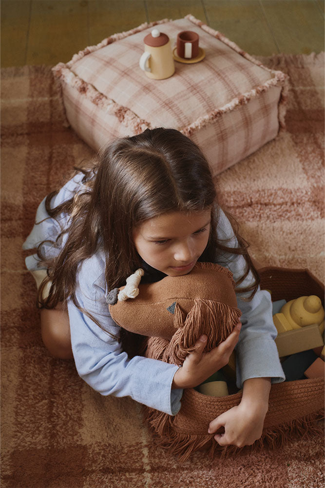 Alle textilen Dekorationsstücke von Lorena Canals werden von unseren Kunsthandwerkern in Indien einzeln von Hand gefertigt, unter Verwendung traditioneller Handwerkstechniken. Wenn Sie eines unserer Wohnstücke besitzen, wissen Sie, dass es sich um ein einzigartiges Unikat handelt.