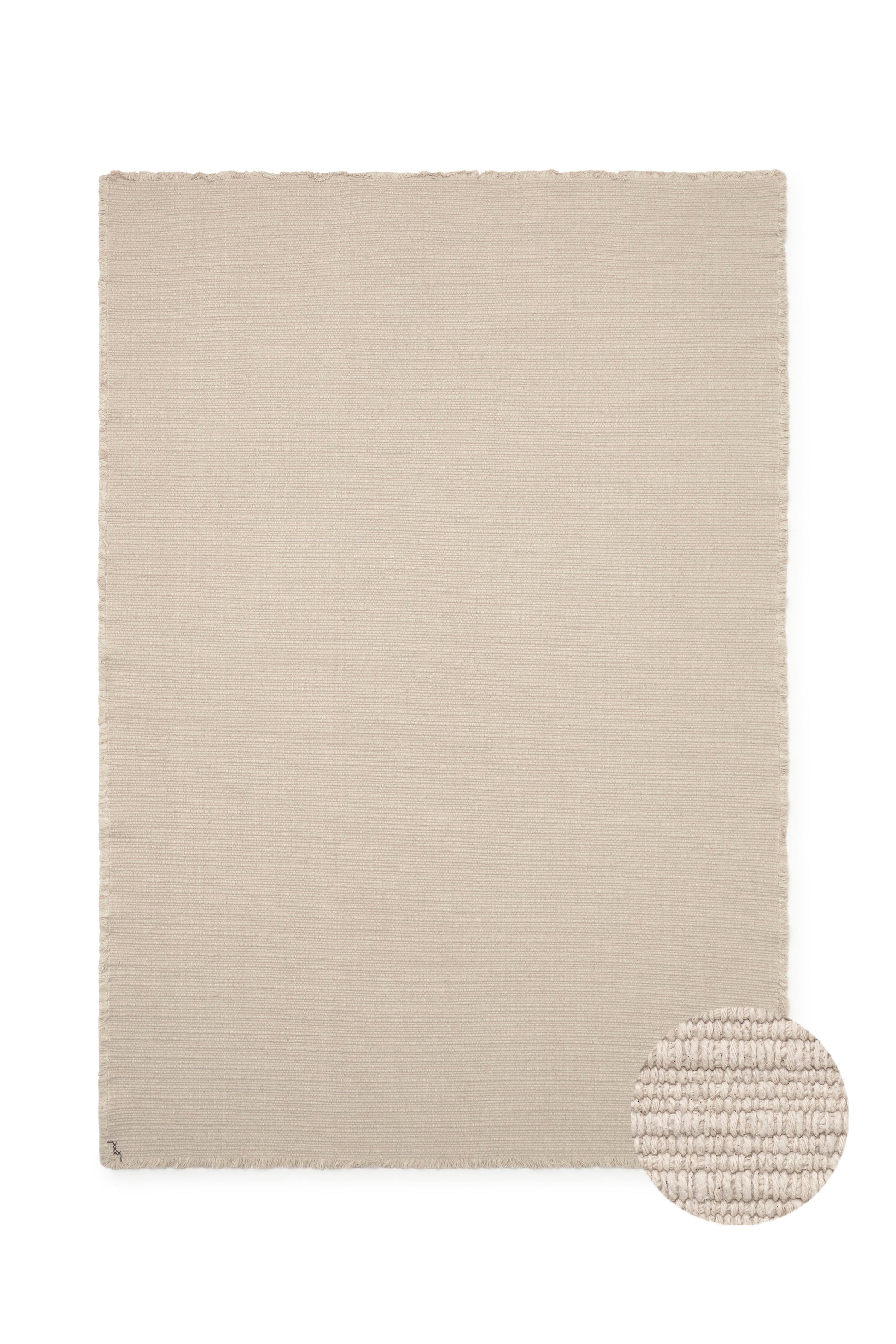 Dies ist ein einzigartiger Teppich aus natürlicher Baumwolle, der von zwei geschickten Handwerkern mit einem traditionellen Handwebstuhl handgefertigt wurde. Diese Webtechnik kann je nach Größe des Teppichs mehrere Tage in Anspruch nehmen und garantiert außergewöhnliche Handwerkskunst in jedem Stück. Jeder Teppich dieser Kollektion ist mit mehreren Kreuzungen signiert, die das 'L' formen und so eine besondere handwerkliche Note verleihen.