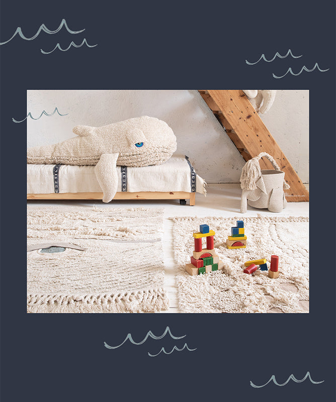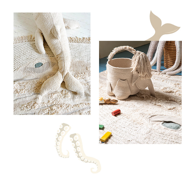 BigStuffed and Lorena Canals present their first capsule collection: where childhood wonder meets artisanal textile decor, made specially for little dreamers. This limited edition features four ocean-inspired pieces: an octopus rug, a whale rug, a mammoth basket, and a whale pouf, each one lovingly handmade to make every piece truly one of a kind.