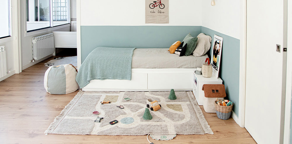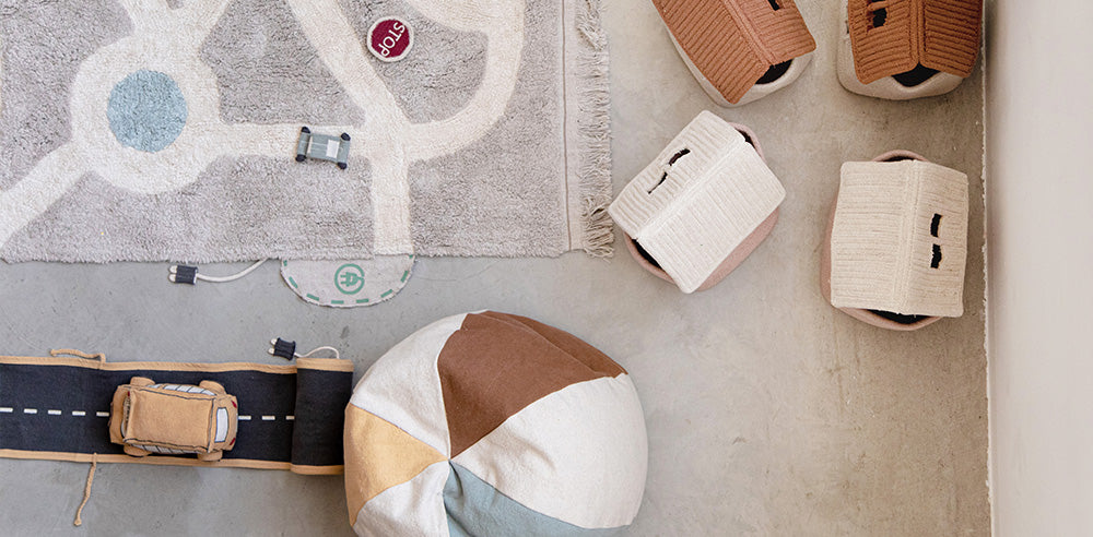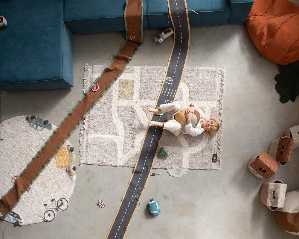 Décoration textile durable et non toxique pour la chambre des enfants qui les occupera pendant qu'ils apprennent en jouant. À vos marques, prêts, partez! C'est le moment de jouer dans l'Eco-Cité!