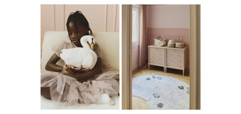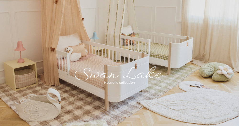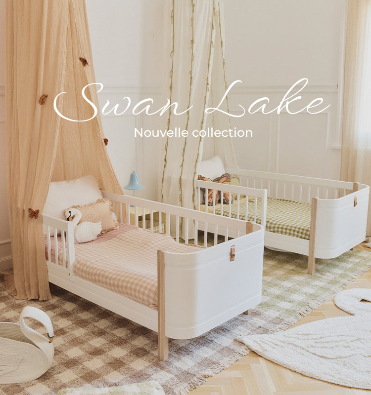 Avec Lac des cygnes, nous introduisons une nouvelle catégorie : les baldaquins. Une pièce polyvalente conçue pour décorer les lits ou les berceaux tout en créant un coin spécial où les enfants peuvent lire, jouer et laisser libre cours à leur imagination.