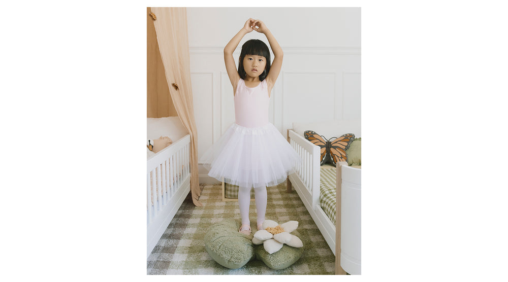 Inspirée par la magie du Lac des cygnes, cette collection réinterprète la beauté classique du ballet à travers des pièces douces, sophistiquées et intemporelles pour les plus petits.