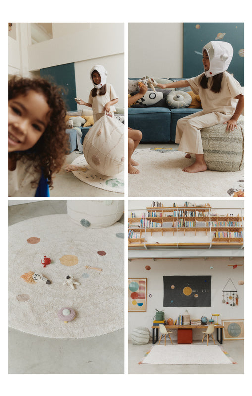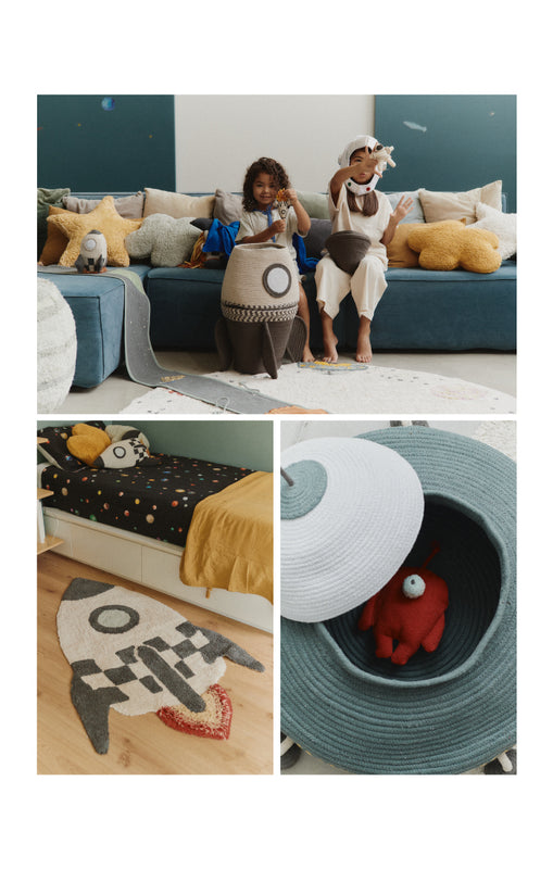 ISPIRATA ALLO SPAZIO, DOVE LA GRAVITÀ È OPZIONALE E I CESTINI UFO VIAGGIANO TRA LE GALASSIE GUIDATI DA ALIENI TESSILI. GLI ASTRONAUTI GIOCANO A NASCONDINO CON GLI EXTRATERRESTRI, MENTRE I TAPPETI RAZZA FUNGONO DA TAXI E I PIANETI SI TRASFORMANO IN PARCHI GIOCO. UN VIAGGIO FANTASTICO CHE STIMOLA L'IMMAGINAZIONE E INVITA A ESPLORARE NUOVI MONDI!