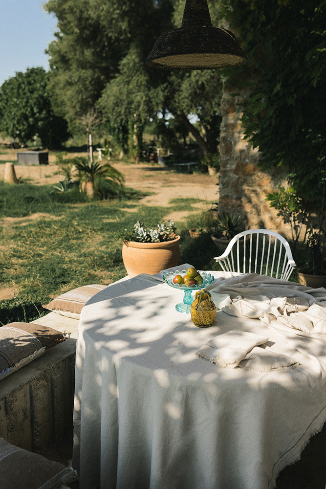 Tovaglia tessuta a mano della collezione Casa Oaxaca in tono Naturale, realizzata da artigiani su telai tradizionali. Un pezzo senza tempo che celebra l’artigianato e l’autenticità.
