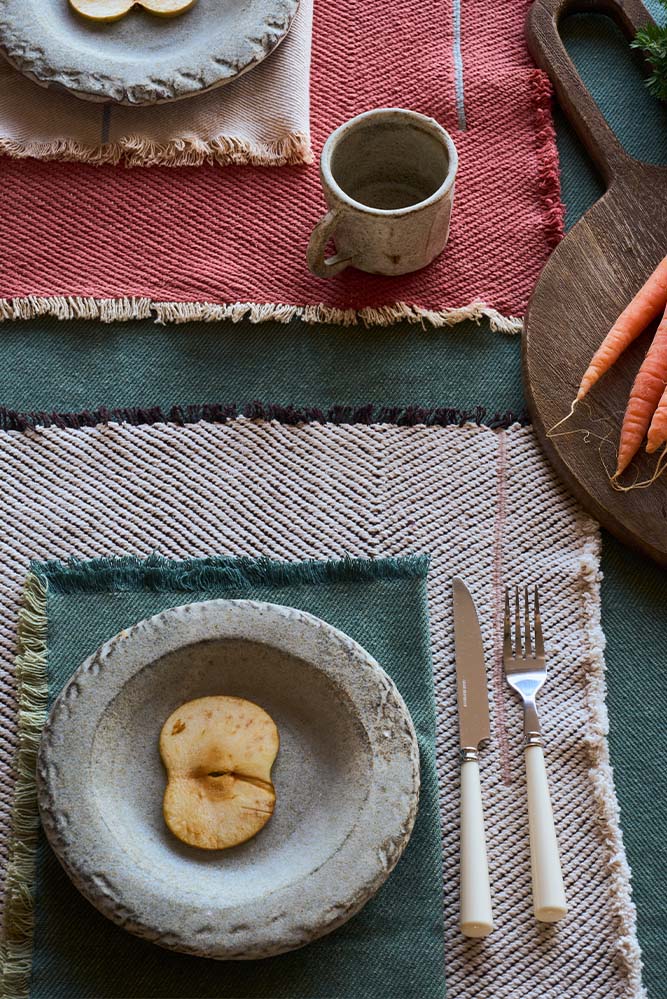 The design features the same vertical pattern from the collection, bringing structure and cohesion to the table. Perfect for mixing and matching with each other and with the tablecloth, allowing you to create a table with its own unique identity.